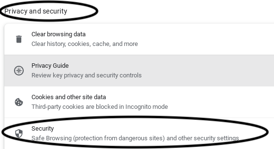 . Scroll down to Privacy and Security, then select Security