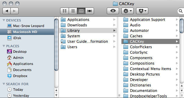 1. Remove your CAC from the reader 2. Open Terminal, by typing Terminal in the spotlight search 3. Copy the entire command below [starting with sudo, and ending with ~/] and paste it into the terminal window (or manually retype it)