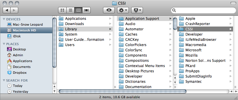 Go to: Hard disk / Library / Application Support / Delete "CSSi" folder